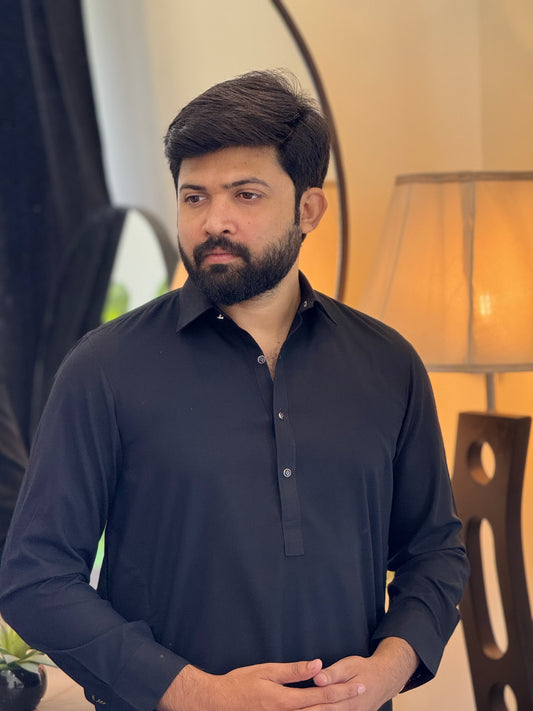 Zair Wash & Wear - Black Double Stitched Shalwar kameez