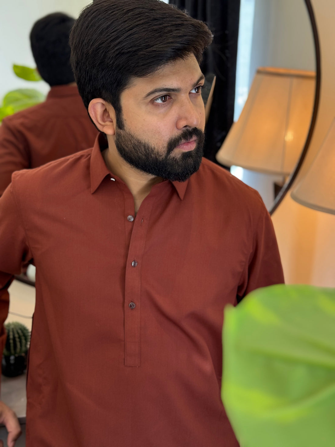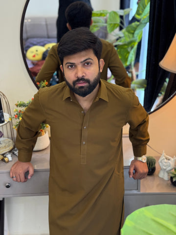 Zair Wash & Wear - Chocolate Brown Double Stitched Shalwar kameez