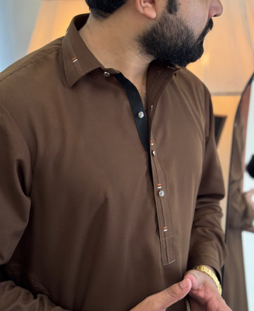 Zair Dark Brown Collar Shalwar Kameez Design 1