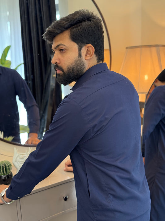 Zair Navy Blue Collar Shalwar Kameez Design 1