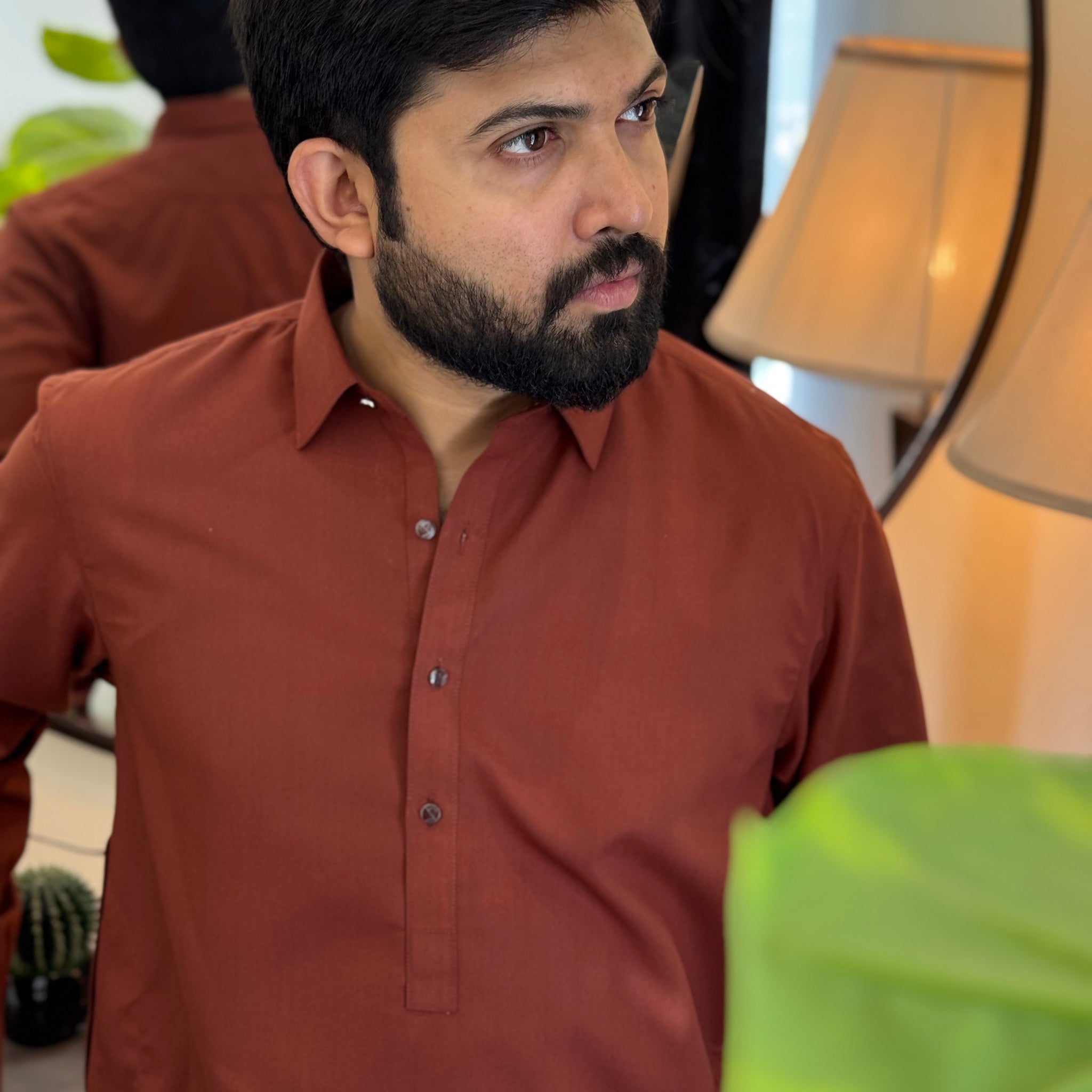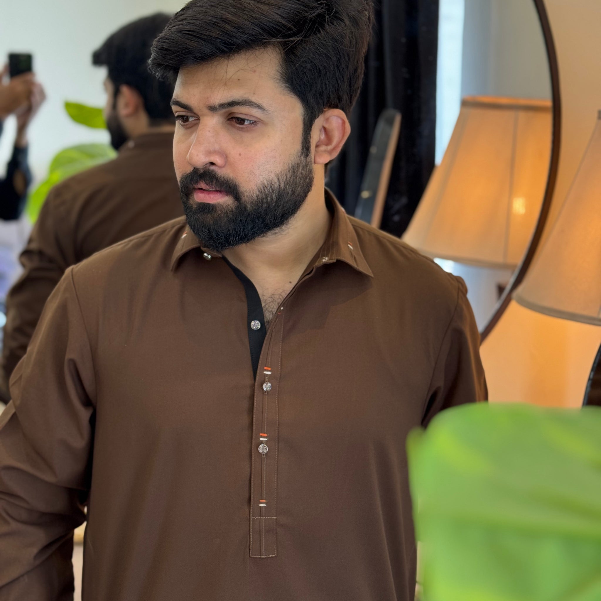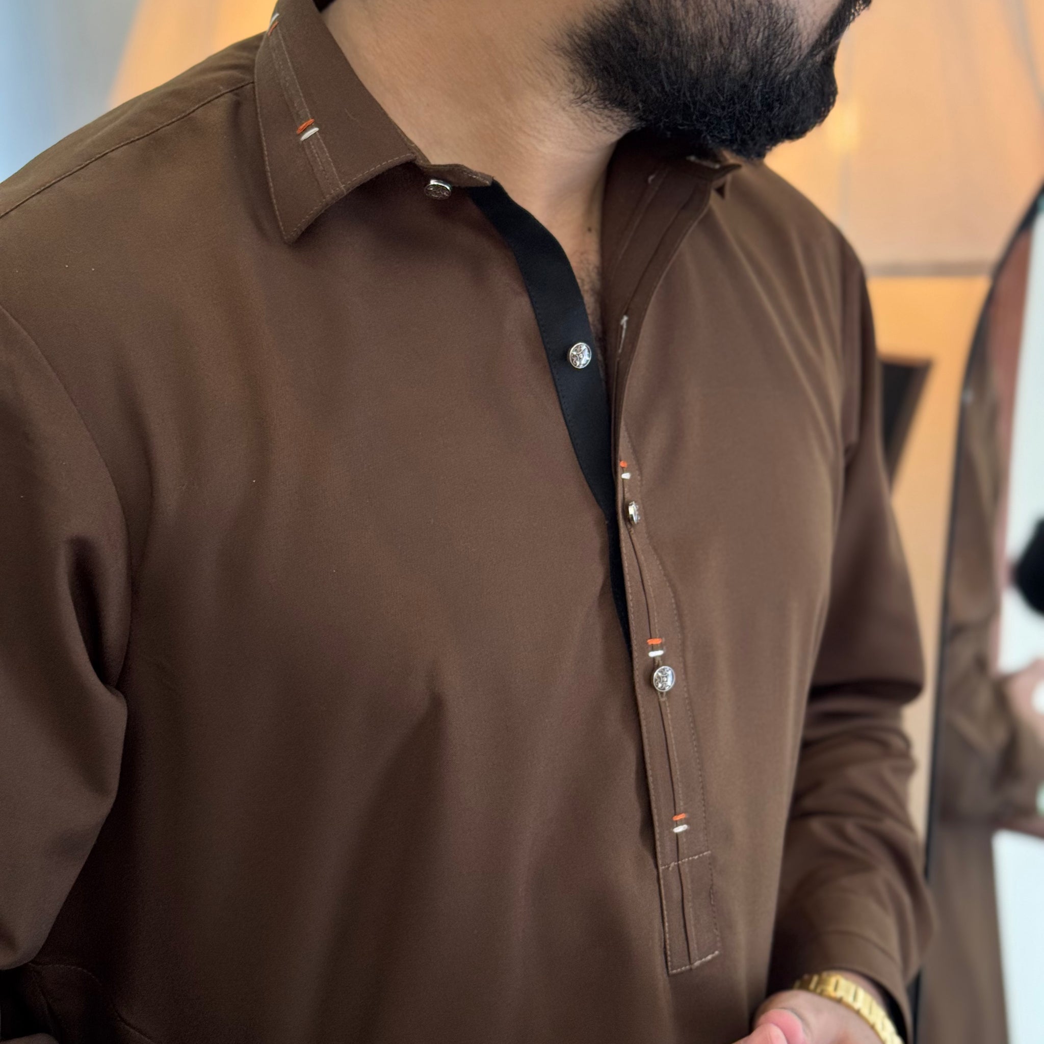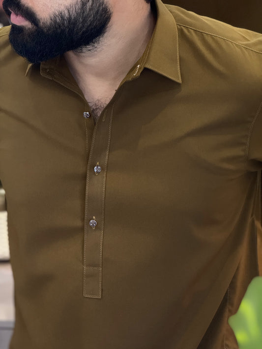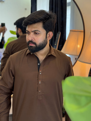 Zair Dark Brown Collar Shalwar Kameez
