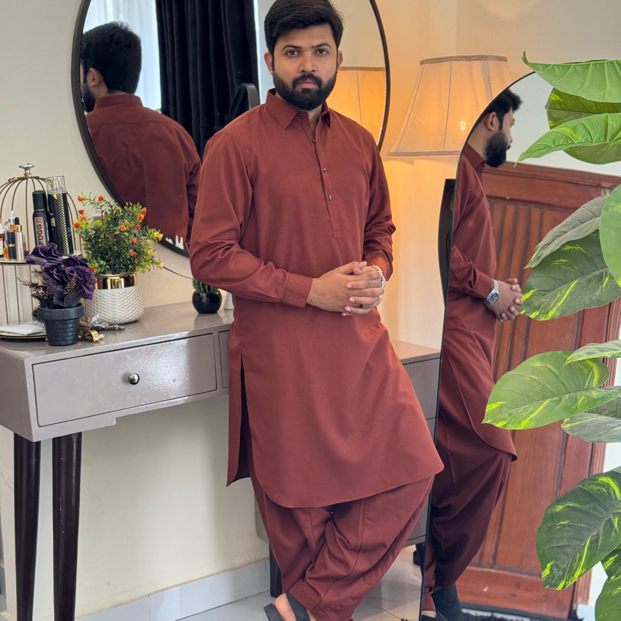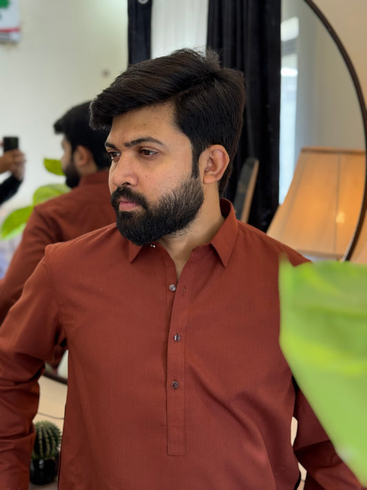 Zair Wash & Wear - Chocolate Brown Double Stitched Shalwar kameez