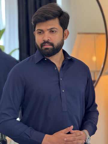 Zair Navy Blue Collar Shalwar Kameez